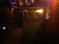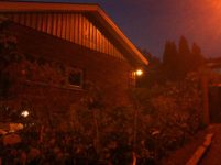 I går kväll gick jag runt i trädgården och fotograferade trädgården i mörkret. Lite suddigt blev det men också väldigt mycket ljus.