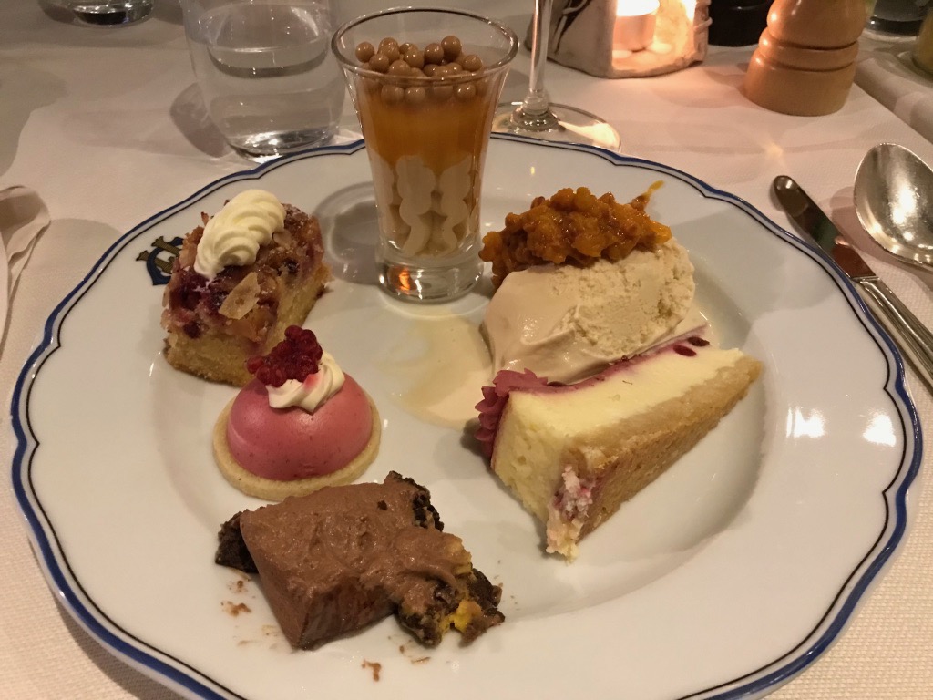 Det gjorde inte maten heller, och den här gången lyckades jag få rum att smaka allt jag ville smaka. Vi åt små portioner och jag lät bli den mättande mandelpotatissoppan och de flesta av varmrätterna (men inte palten och siken som var bland det godaste av allt!). Här kommer suktbilder: