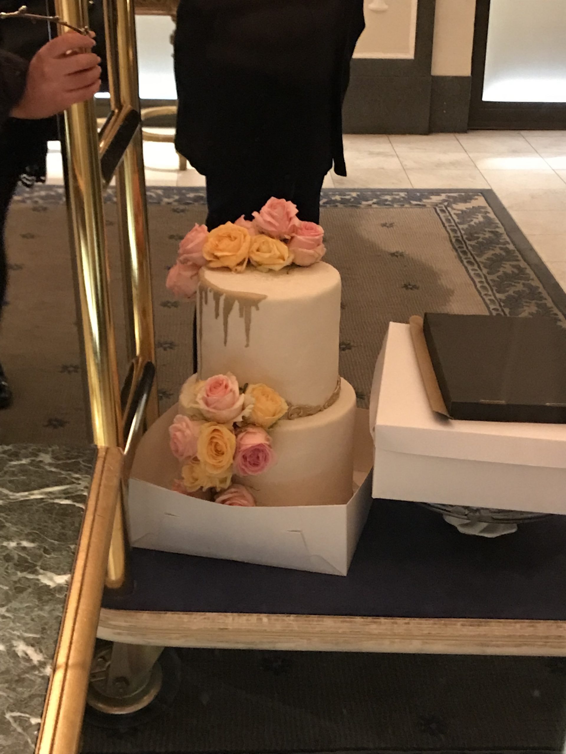 Det var mycket folk i omlogg och troligen en bröllopsfest på gång. Vi såg tårtan som i början vaktades av flera personer, men som vi senare såg stå helt övergiven. Tänk vad sugen man bara blir att trycka ner ett finger i den eller åtminstone knycka en marsipanros (om det nu var marsipanrosor!