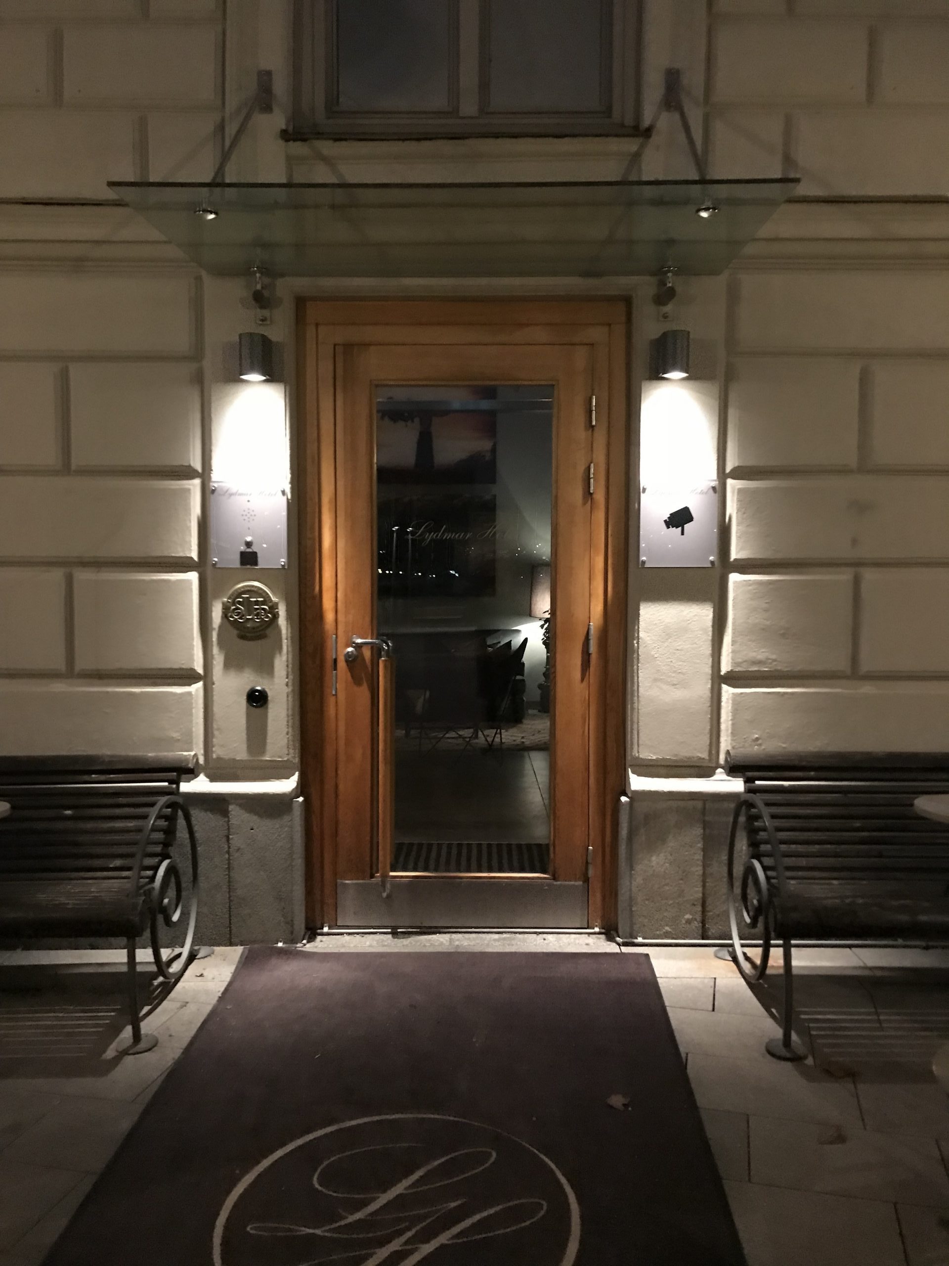 Vid kvart i 5 mådde vi alla bra igen och Anna åkte hem och vi gick bort till Hotell Lydmar för att ta en drink före maten. Det var ett himla mysigt ställe med en oansenlig ingång.