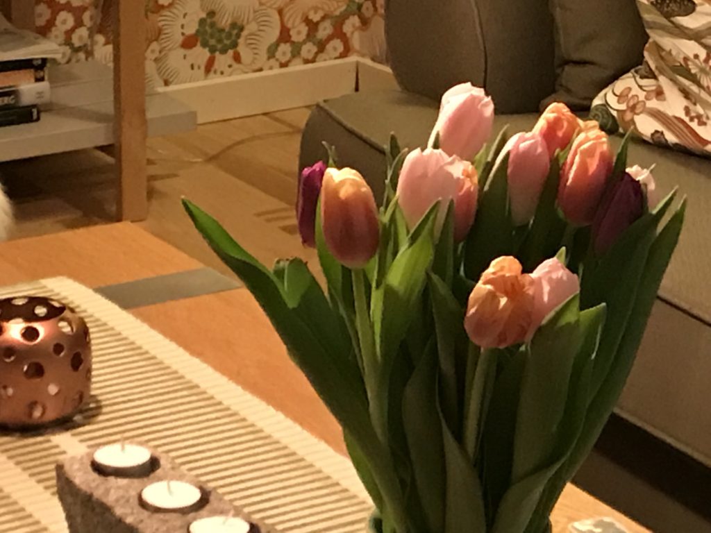 Medan jag pyntar här hemma, och ställer fram de fina tulpanerna jag fick igår.