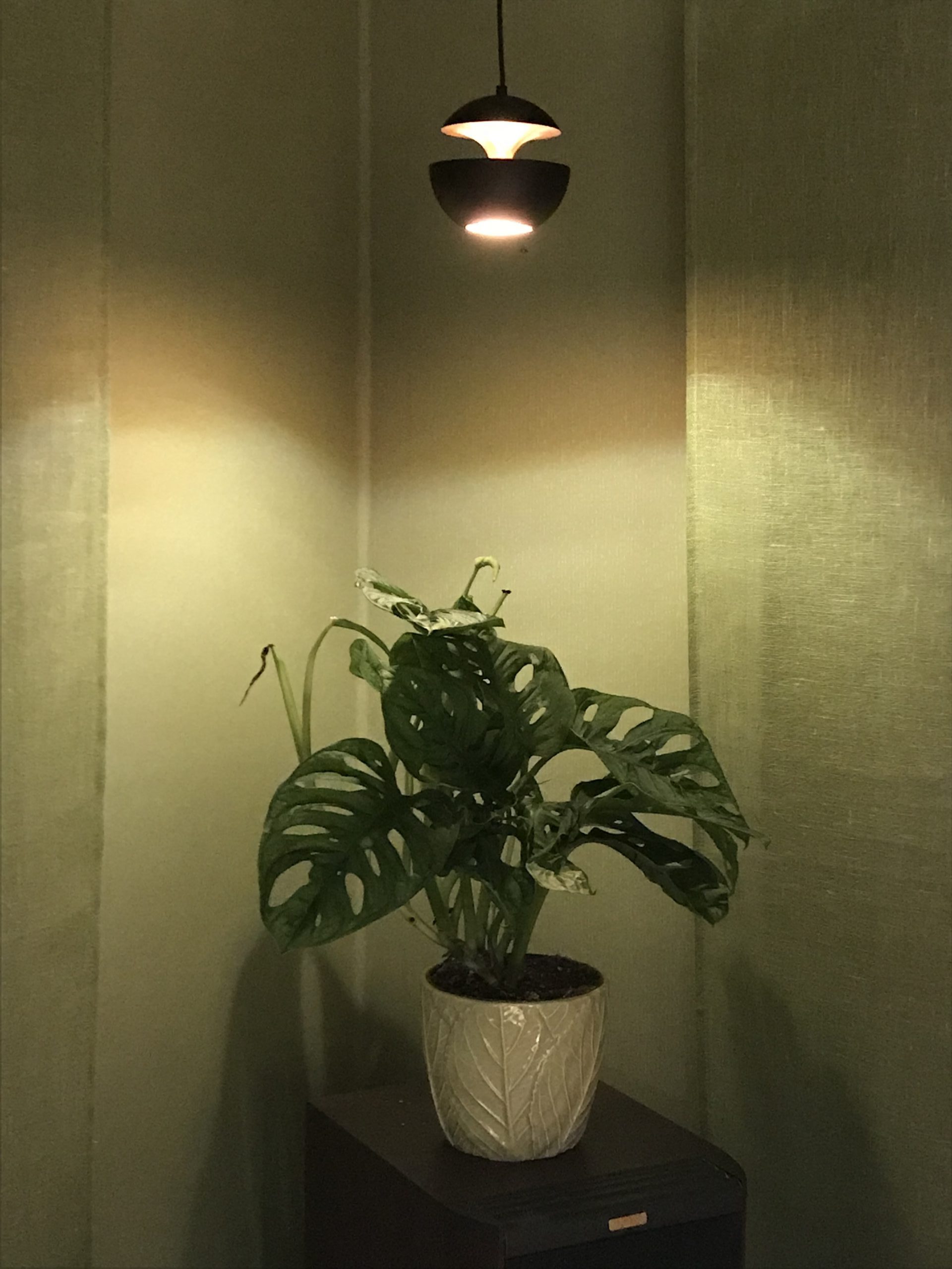 Och så äntligen, fast i god tid innan Bron börjar så hänger den där och lyser så fint, och jag inser att jag alltid kommer att behöva ha en krukväxt där att lysa upp. Here comes the sun!