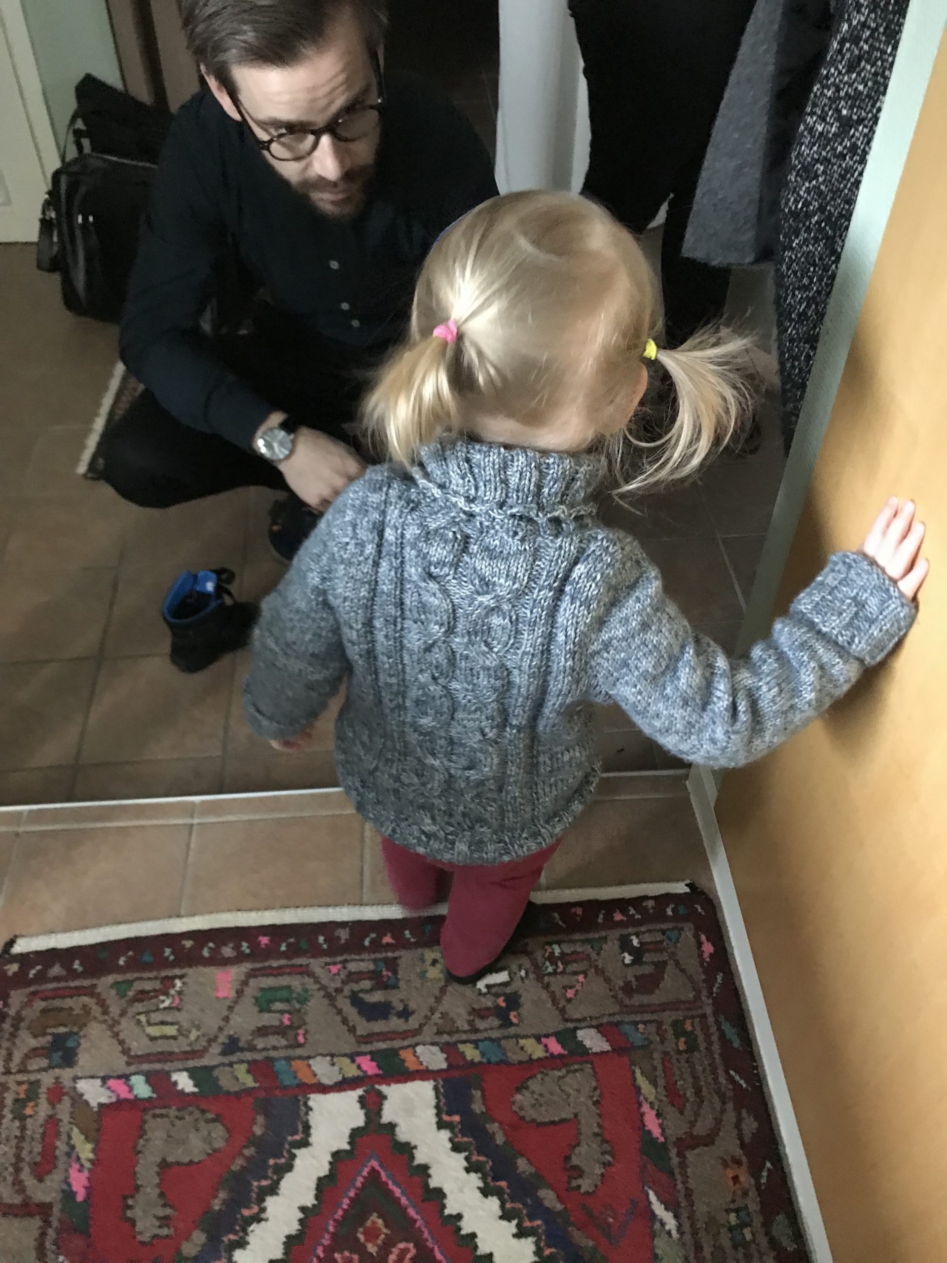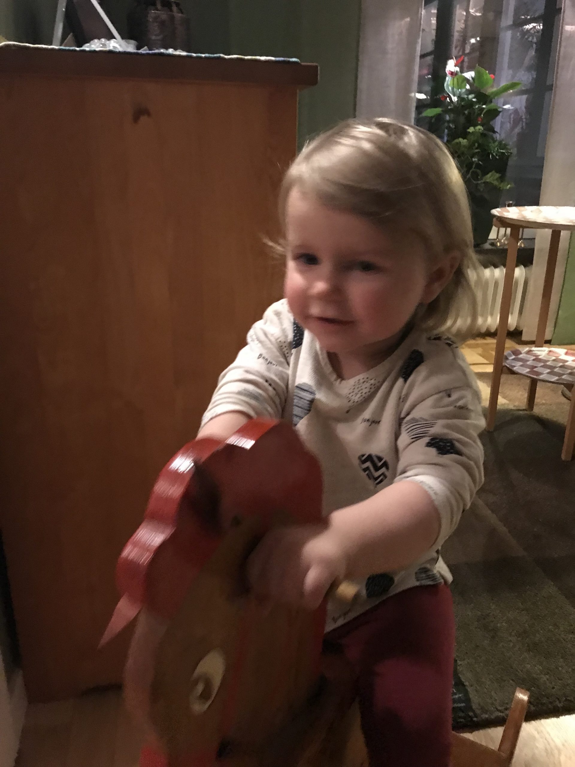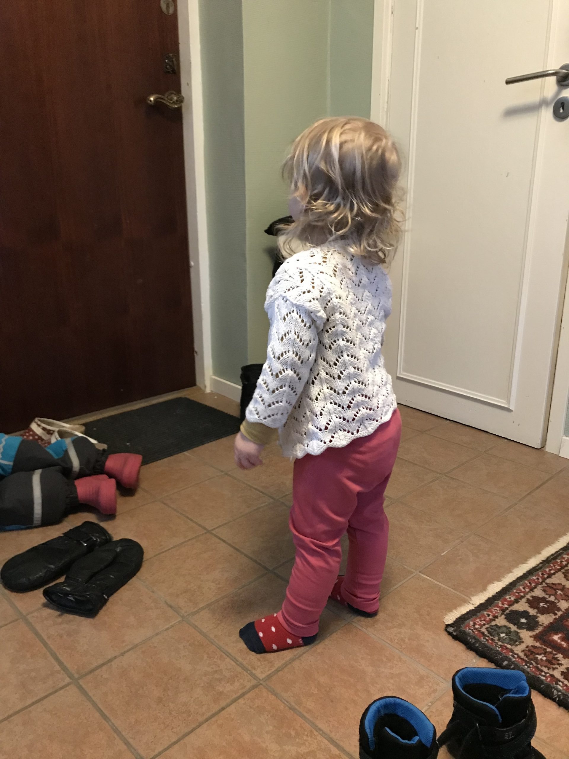 Anna skulle komma förbi med några av sina teckningar innan de andra åkte hem till Linköping igen. Det räckte med att säga till Ella att Anna skulle komma, så ställde hon sig meddetsamma vid dörren!