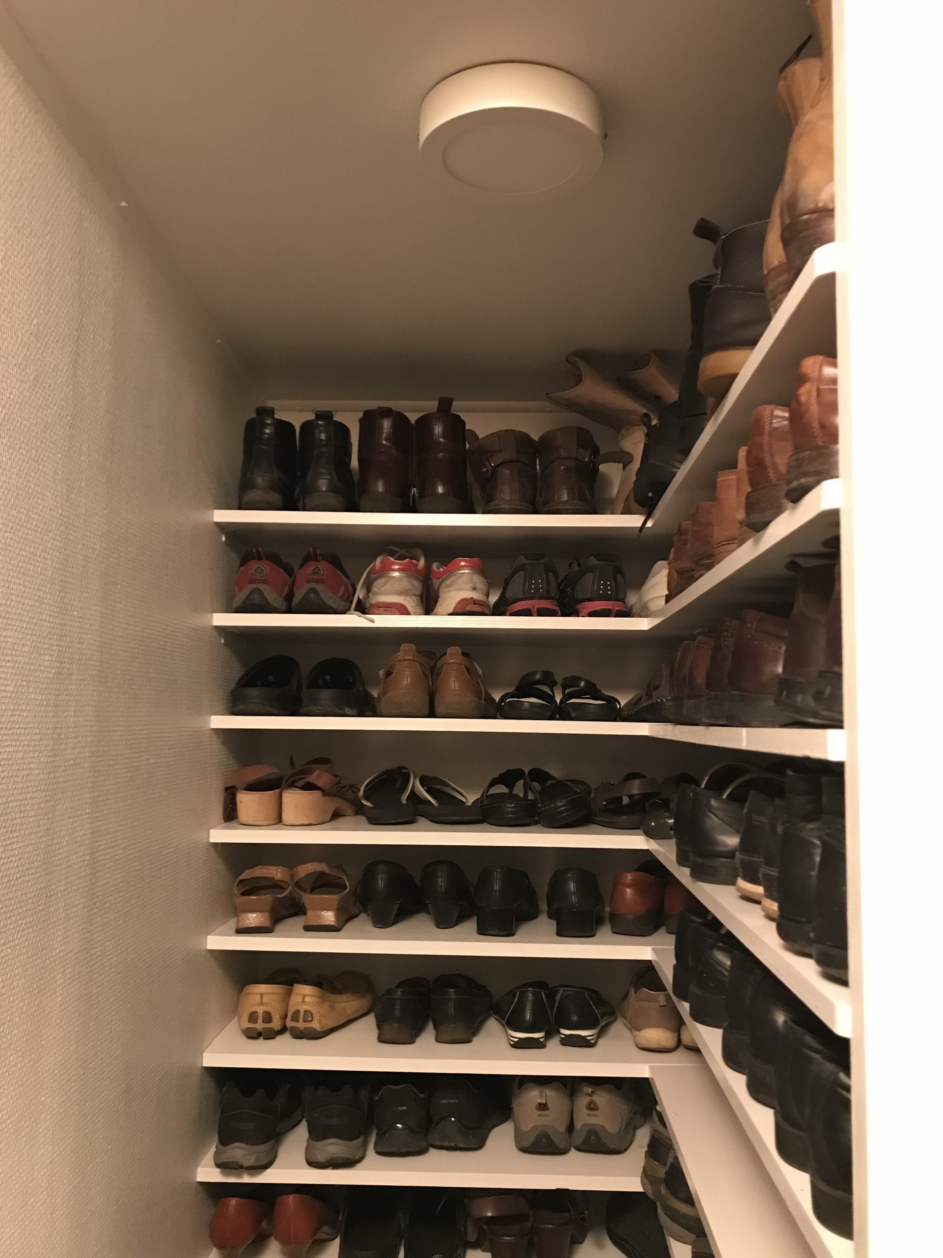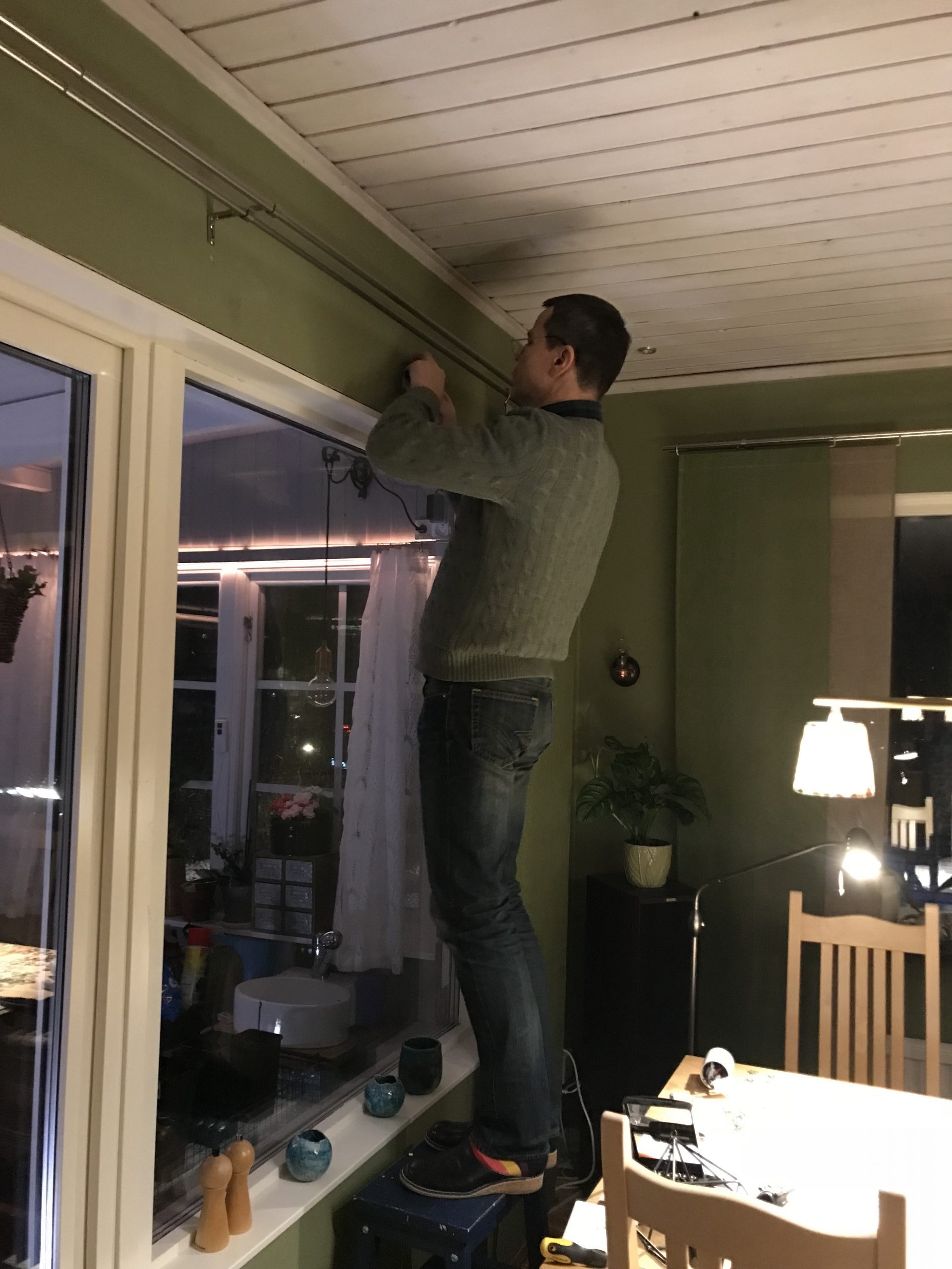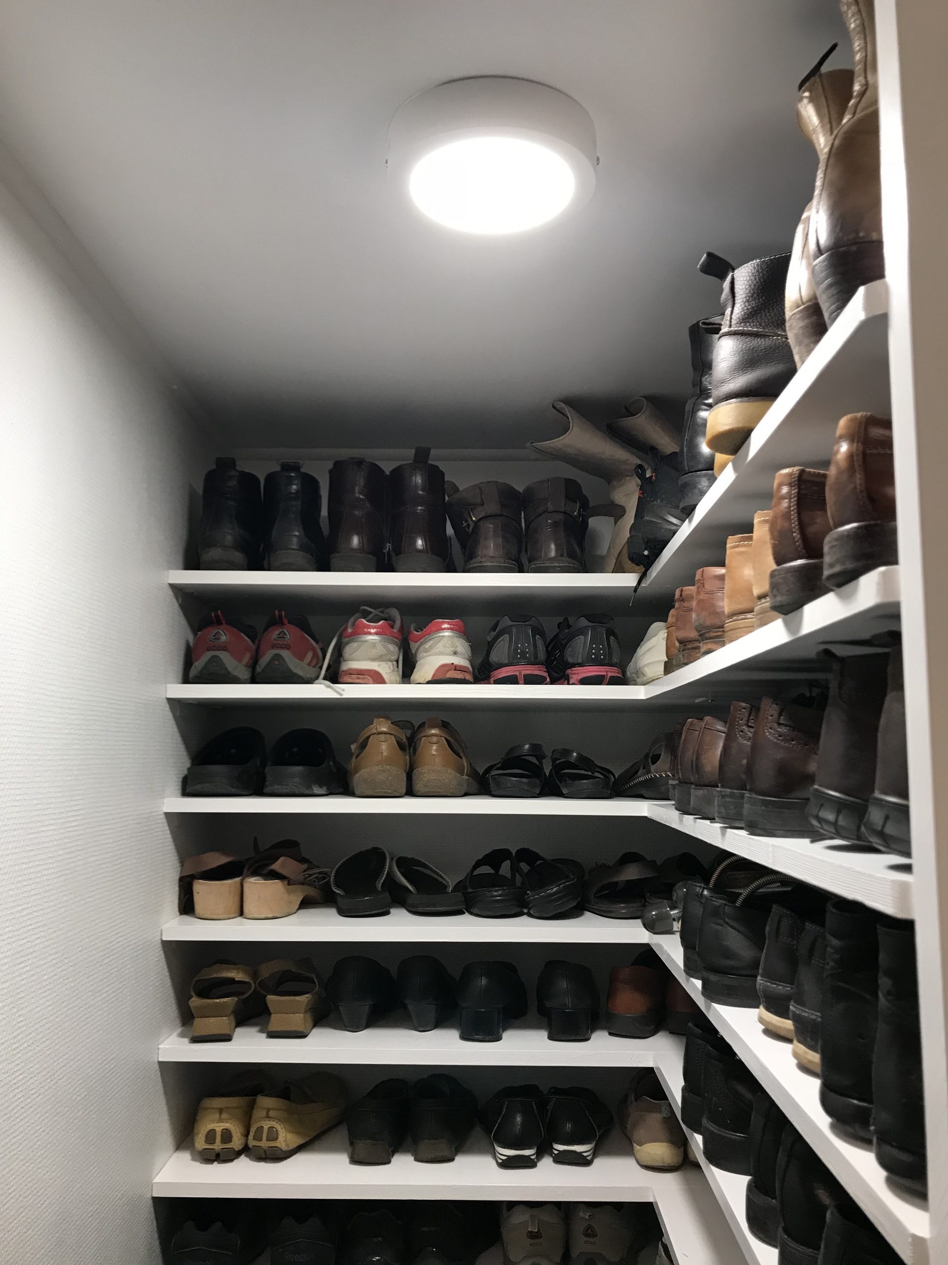Sen stack vi iväg till Bauhaus för att köpa en lampa till utrymmet med skohyllorna och en Nexa kontakt så vi kan tända och släcka det vi sätter i uttaget ovanför vardagsrumsfönstret. Vi har haft en dosa liggandes i flera år, men när Erik skulle visa hur man monterade den så visade det sig att den inte funkade med LED-lampor så vi fick åka och köpa en ny.