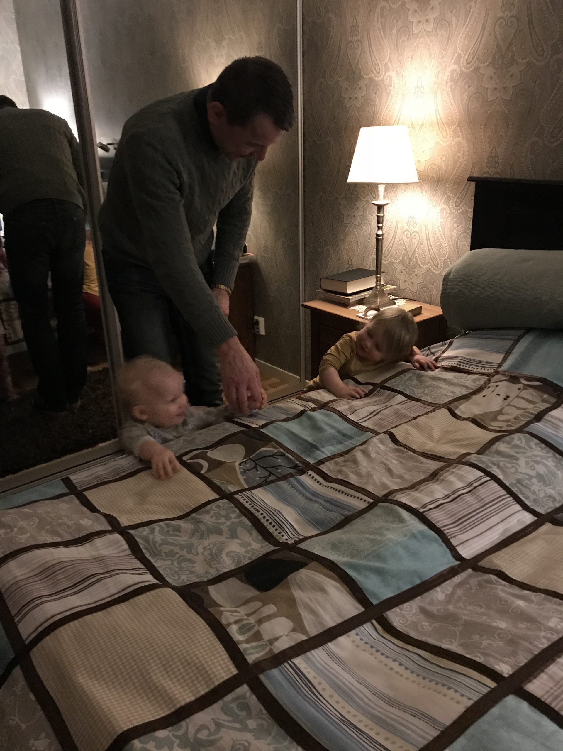 Det skiljer ett år mellan Erik och Viktor men de var ändå kompisar under hela uppväxten. Nu skiljer det en månad mellan Ella och Ingrid, men de var inte lika bra på att leka med varandra ännu, men det berodde väl mer på åldern. Men de lekte med samma leksaker, och blev nästan inte alls arga om de tog varandras saker. Disko till Mora Träsk mfl var en hit ända tills de krockade mer varandra. Men allt var förlåtet sedan när de fick hoppa i våra sängar. Vid halv 8-tiden tog det roliga slut och Ella somnade som en sten medan vi andra såg gårdagens På Spåret. Vi somnade allihop redan kl halv 11!