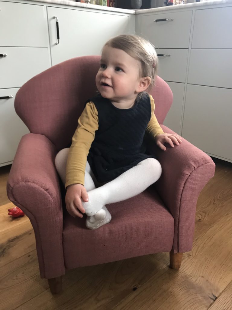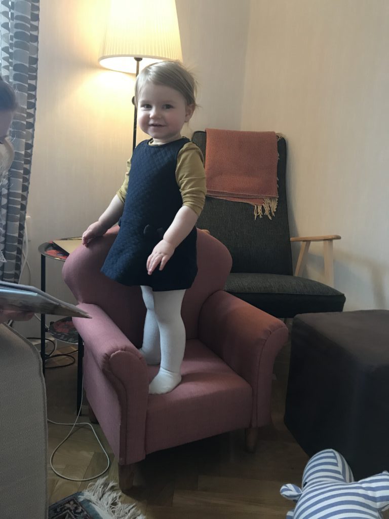 Så, nu saknas bara bilder med Ella, så vi åker väl ner till Linköping och lämnar över fåtöljen och tar några bilder. Jag hann ju knappt sätta ner den på golvet så satt hon redan i den! En lyckad present med andra ord!