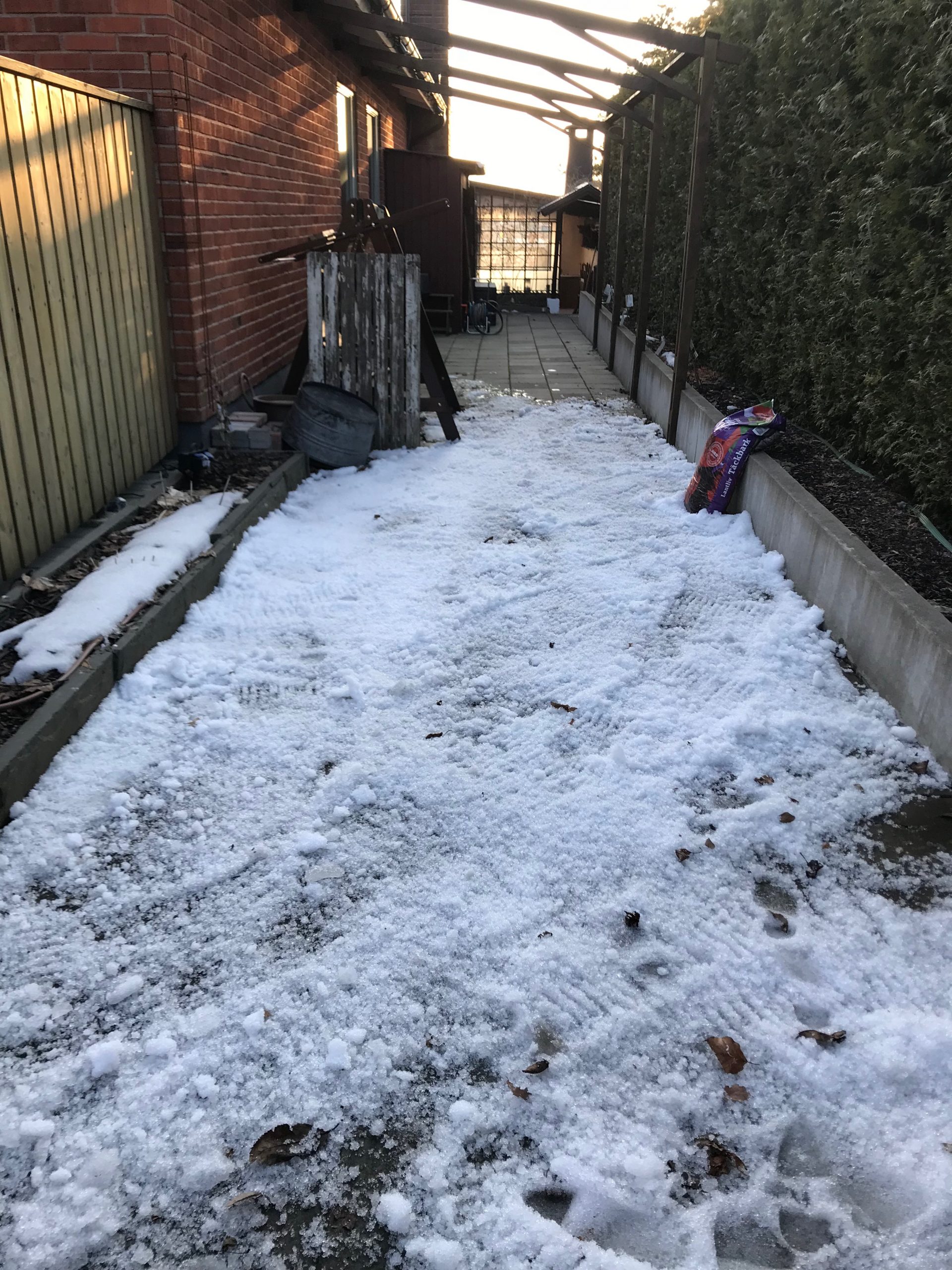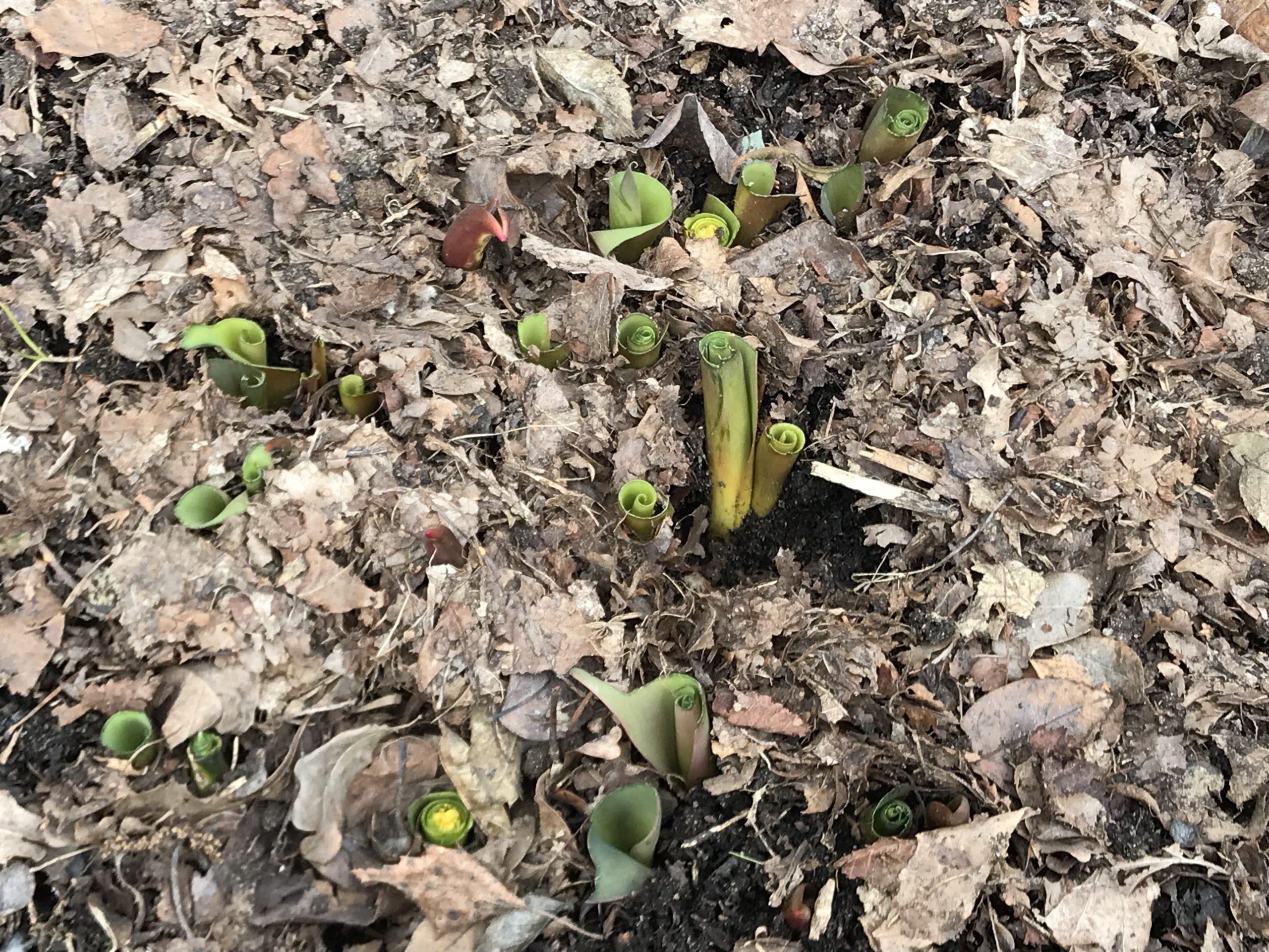 Vi har blivit lite kaxiga de senaste åren eftersom vi inte haft vare sig rådjur eller harar i trädgården på flera år. Så det har blivit fler och fler sorters tulpaner i trädgården. Det här gjorde mig riktigt ledsen för rådjuren brukar äta upp bladen och om knoppen inte kommit så långt så kan det fortfarande blomma men nu var det nedätet så det aldrig kommer att bli någon blomma. Vi får ta tag i det när vi kommer hem!