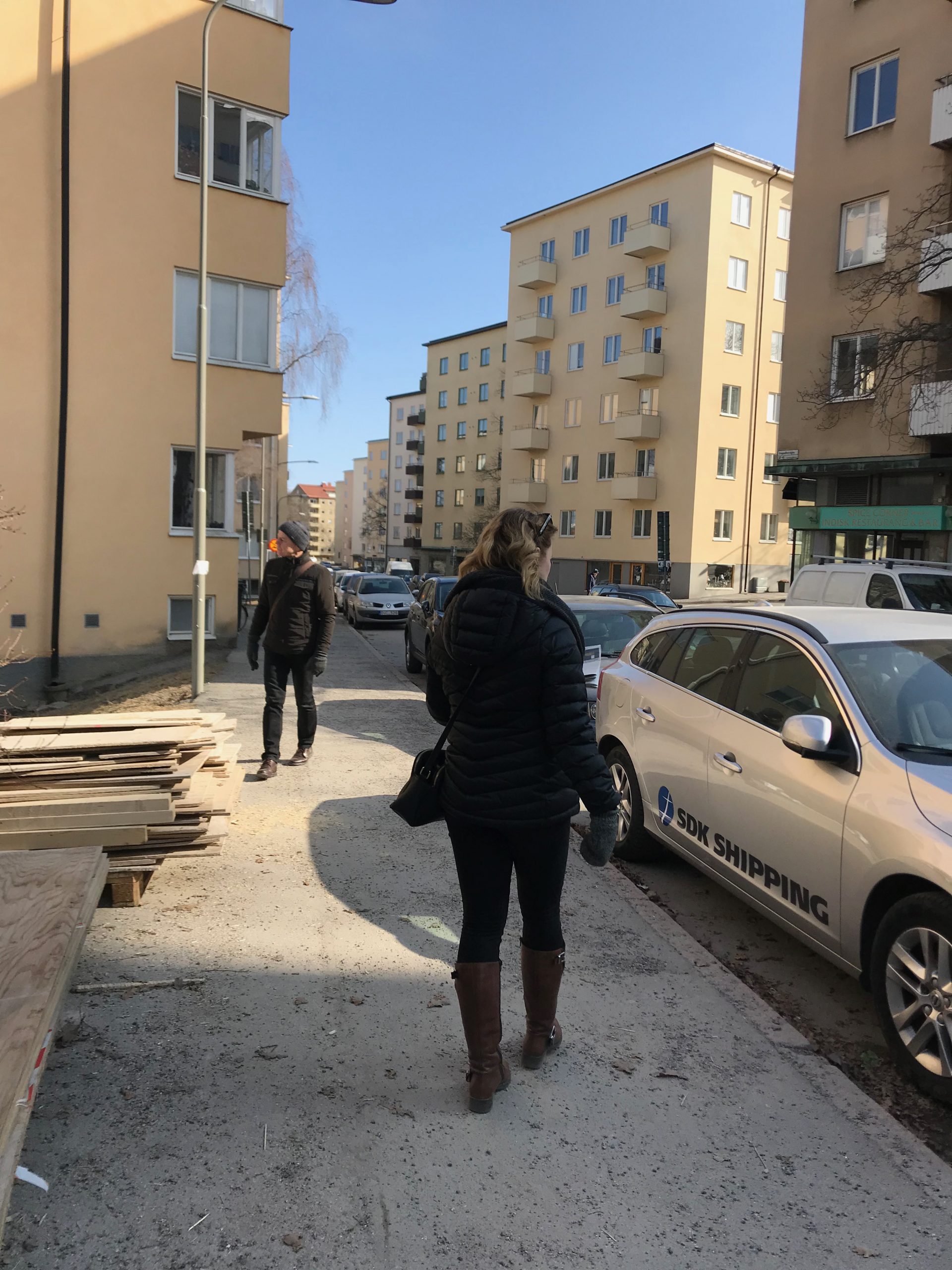 Eftersom jag skulle vara frisk idag hade jag hittat på en agenda för dagen. I Dagens Nyheter fanns en tävling som gick ut på att gå runt i Fredhäll och hitta små detaljer som fanns på bilder i tidningen, men minimala ledtrådar. Det kändes som en lagom anspråkslös sak att göra, och jag förstod ju att vi skulle vara ett gäng som gick runt och såg förvirrade ut.